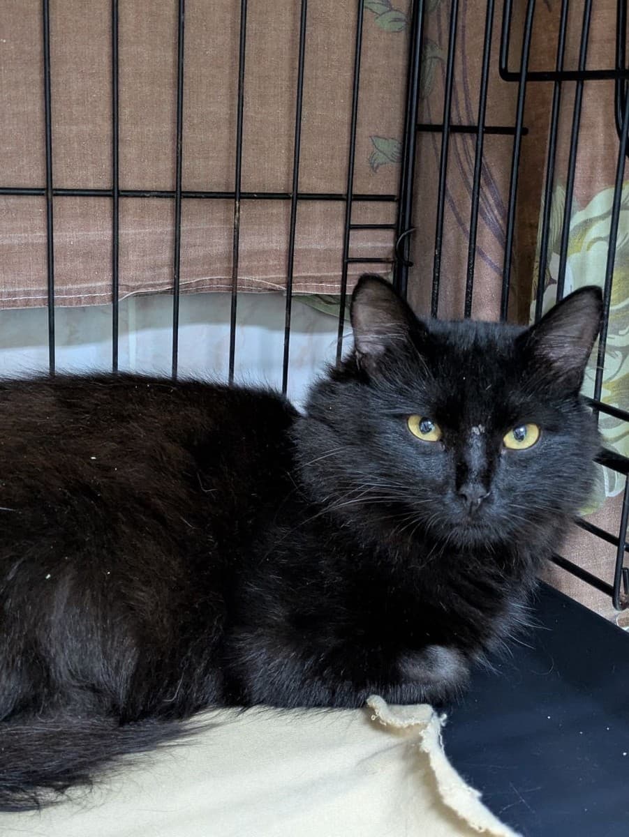 🐈⬛ Черный пушистый красавец, которому всего 10 месяцев. За его серьёзным, почти философским взглядом скрывается очень ласковый и игривый котик