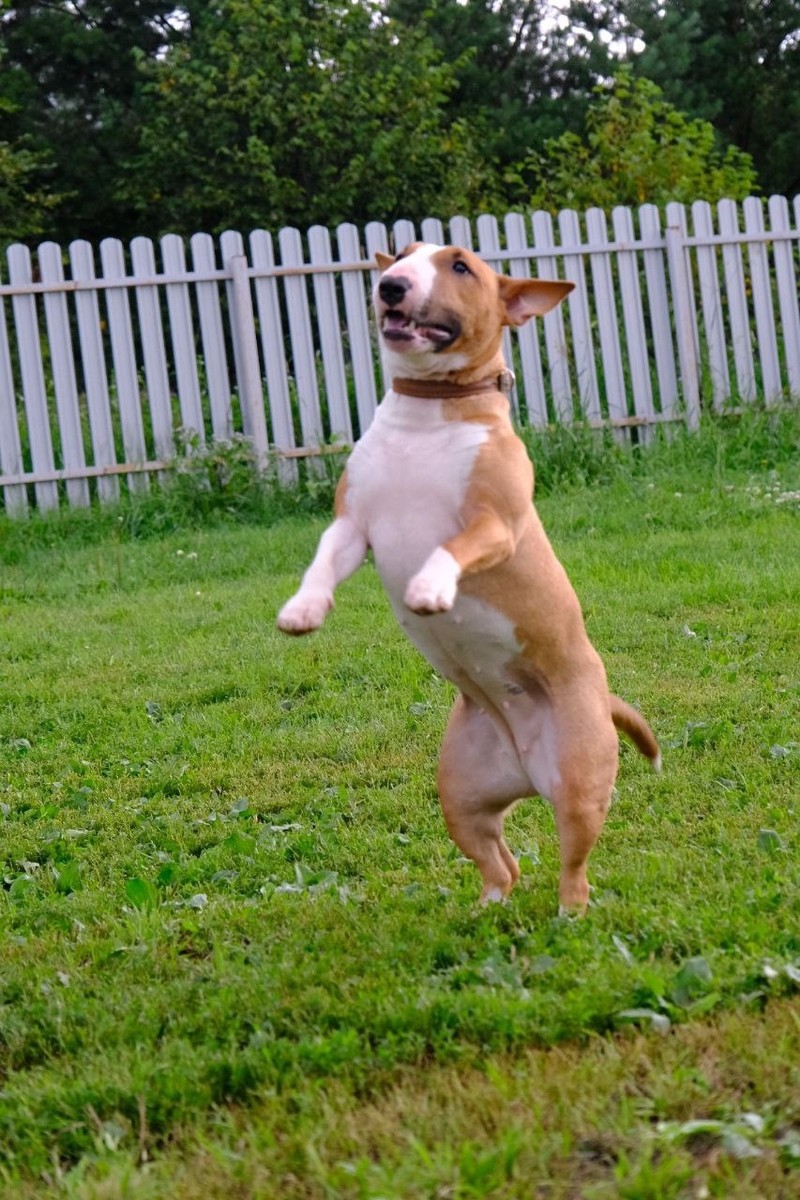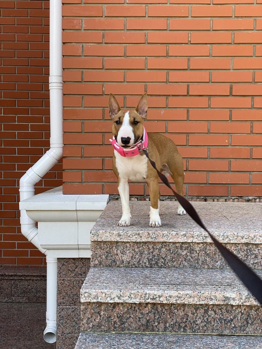 БоНяша молодая сука миниатюрного бультерьера, возраст до 2-ух лет. Мелкая по размеру и неуёмная по темпераменту.
