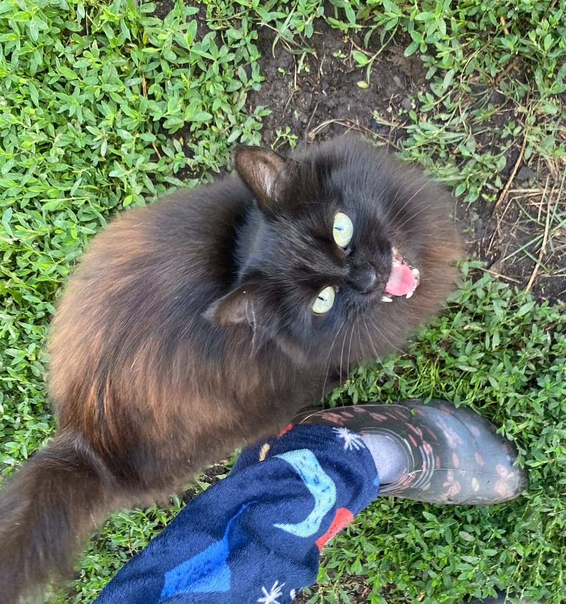 Первые хозяева ее выкинули как ненужную игрушку за то что она забеременела, в итоге прибилась к нам на даче, у нее родился 1 котёнок, его забрала уже семья. Кошечка также живет на даче, скоро морозы, себе забрать не могу тк у мен уже есть дома животные.