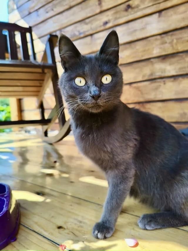 На дачу пришла мини кошечка. Русская голубая. Изящная, грациозная. Страшная ласкуша и подлиза. Отличная мышеловка.