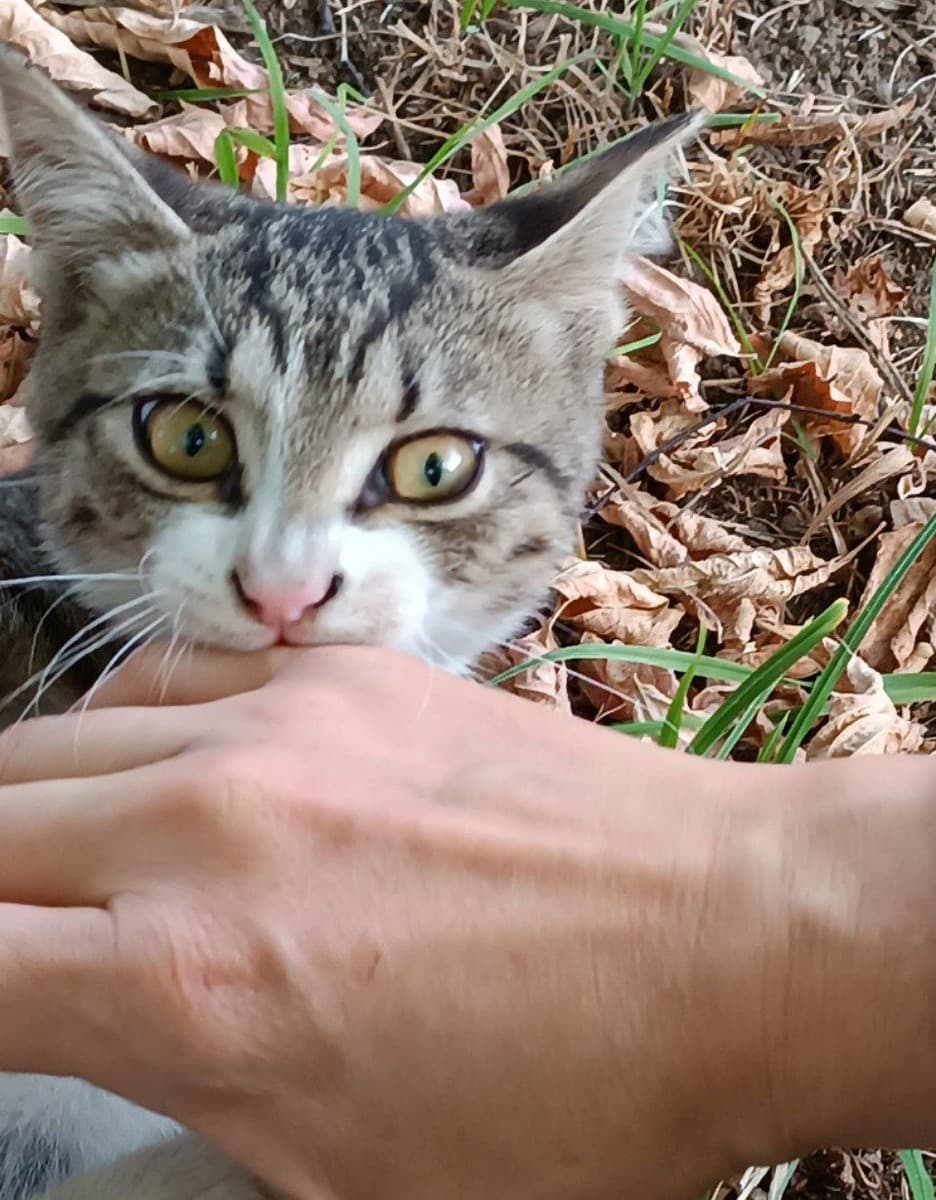 Полосатый, лапки и брюшко белые. Очень активный и добрый! Играет со всеми листиками, идёт к людям, невероятно ласковый. Чудесный, обаятельный и дружелюбный котёнок!