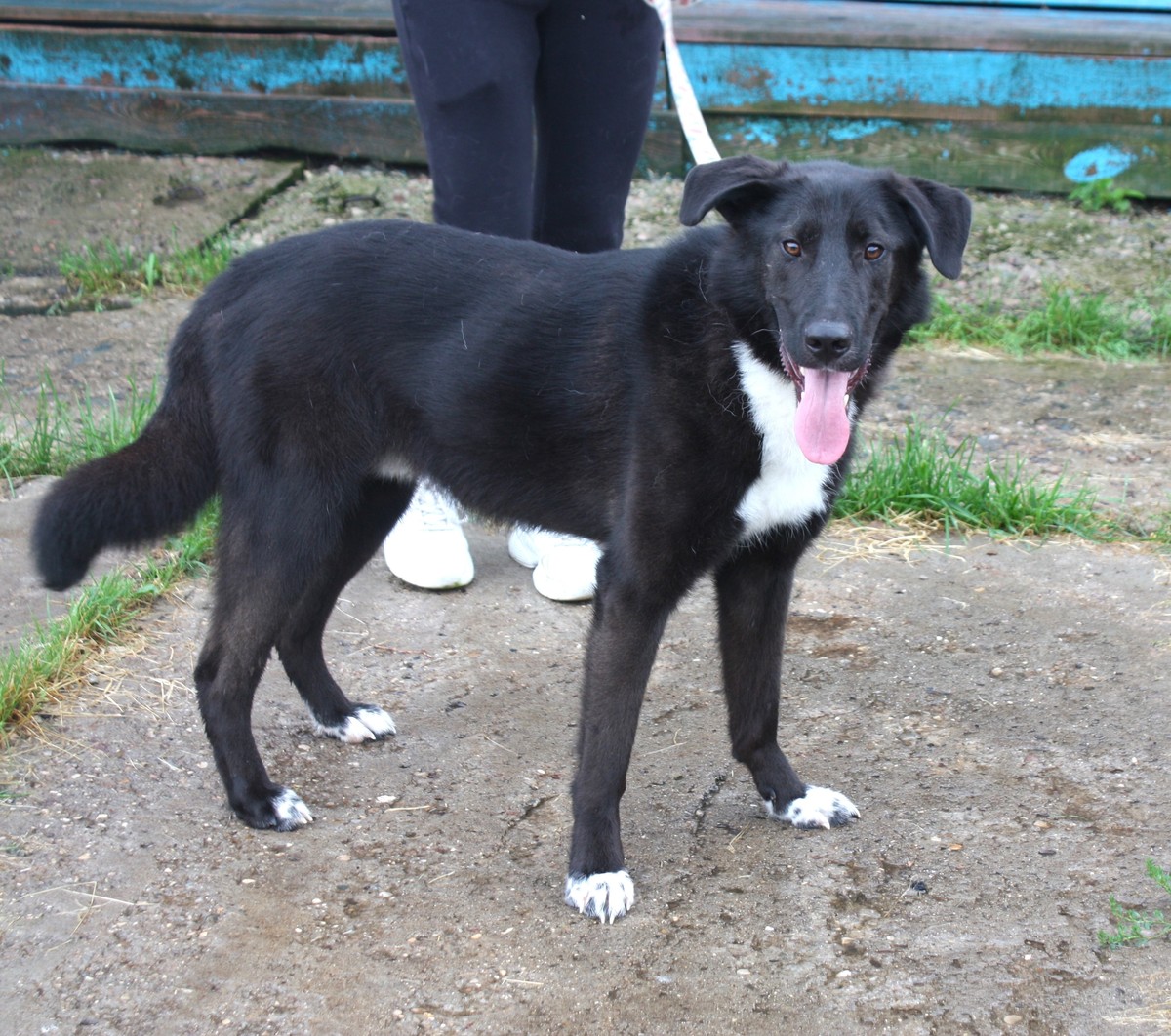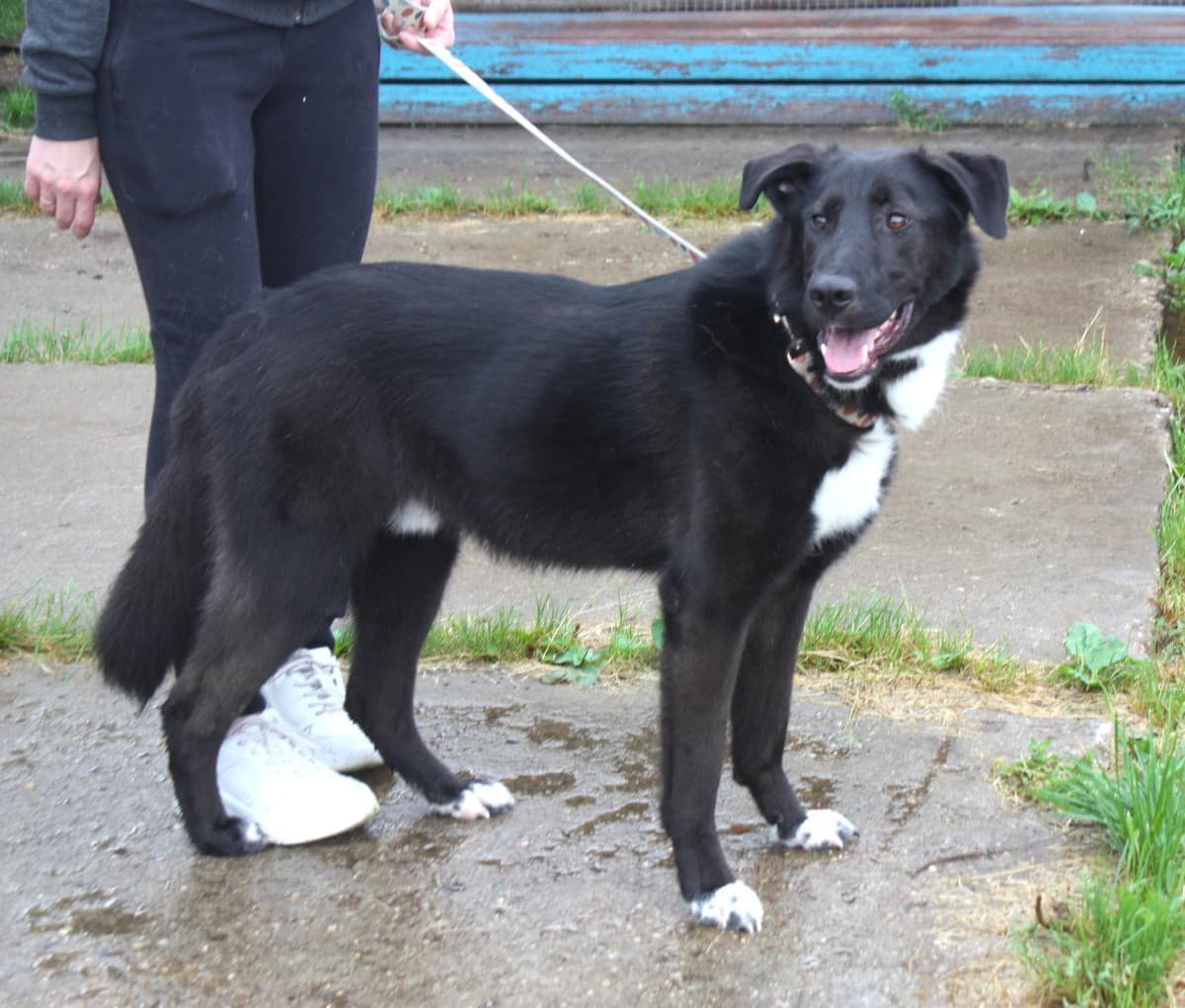 Он точно бывшедомашний, хорошо ходит на поводке и спокойно ведёт себя в машине.