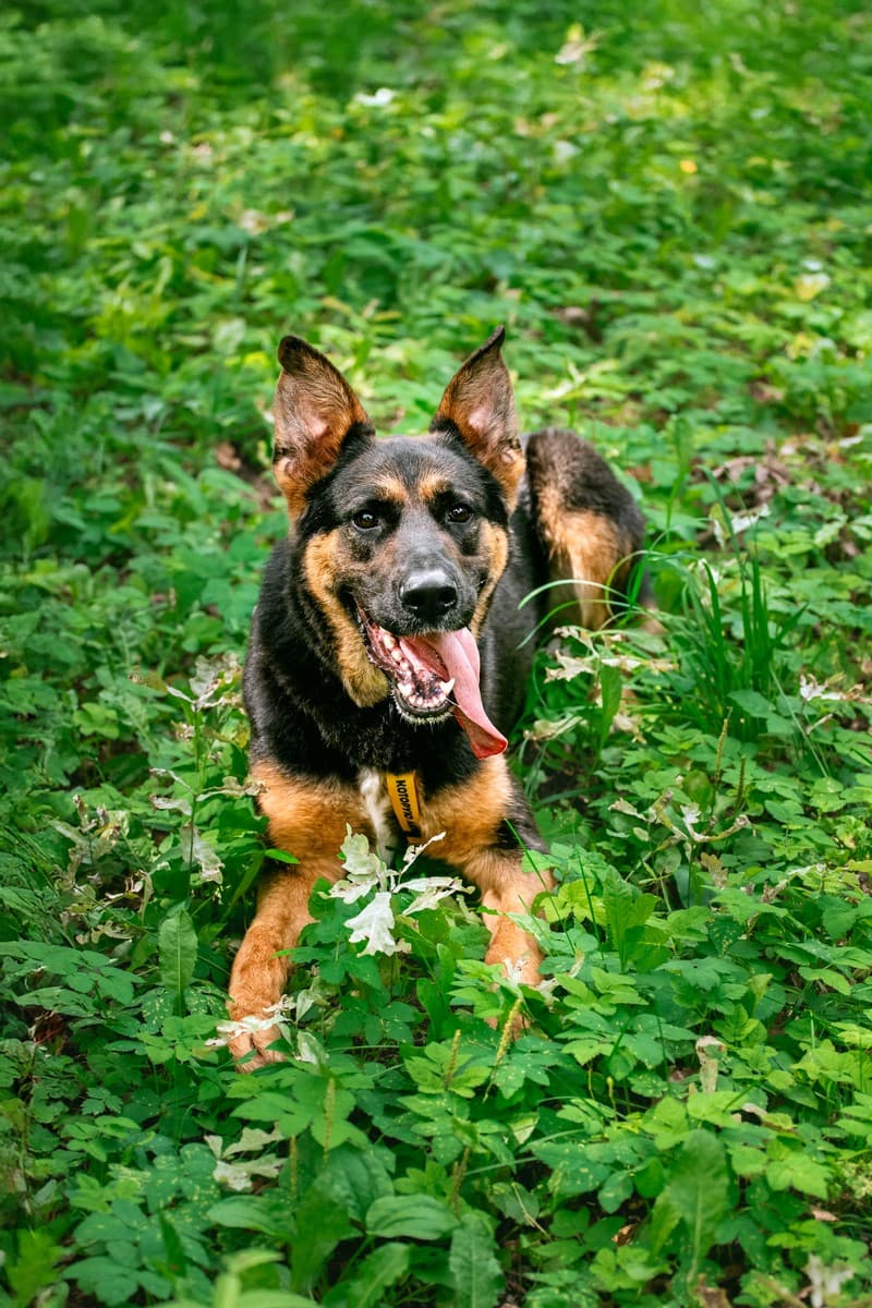 Метис овчарки без «печали в глазах»: статный, собранный, умный — и одновременно веселый парень-подросток с озорной искрой. Он легко переключается от серьёзного вида к игривости, а потом ложится на траву с тем самым взглядом: «Возьми меня домой…»
