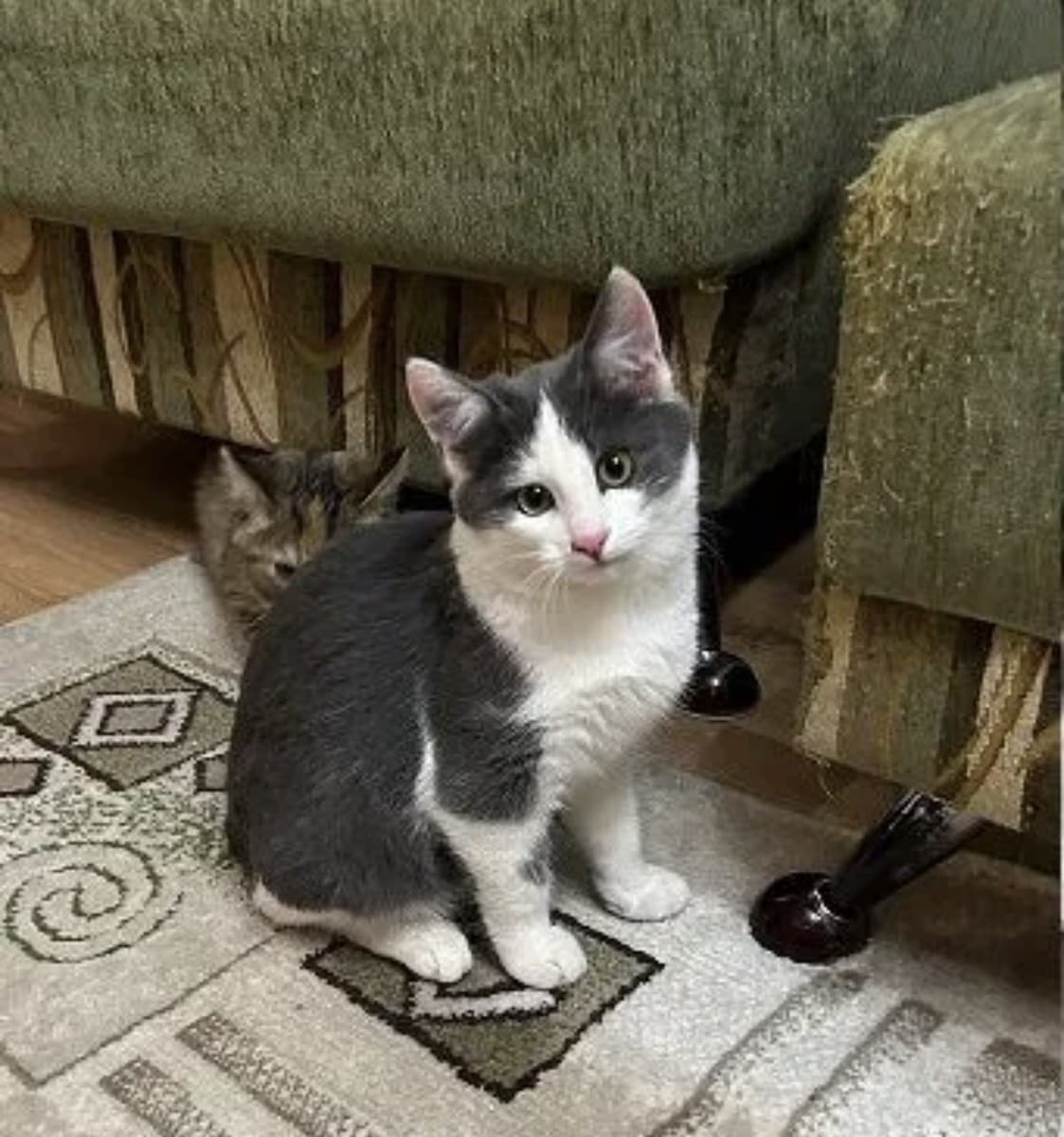 Два котенка мальчика ищут дом. Один серо-белый котенок, другой черно-белый. Шерсть короткая, очень приятная на ощупь. Дружелюбные. любознательные. Возраст 5 месяцев. Вырастут крупными котами. В еде не привередливы. К лотку приучены, от паразитов обработаны.