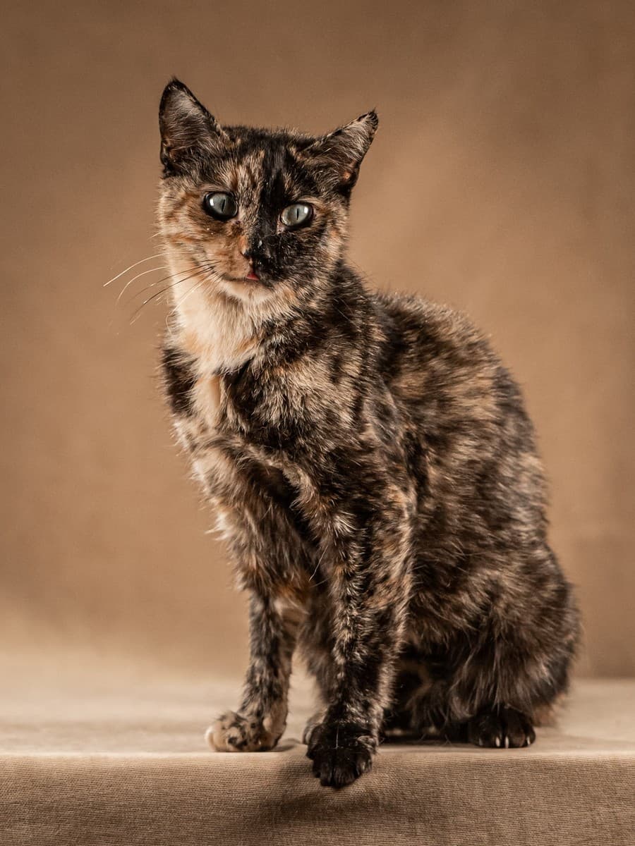 Познакомьтесь с Венецией — кошкой, чья внешность полностью отражает её характер. У неё роскошный черепаховый окрас и изящная «маска» на мордочке. Она может сама прийти за порцией ласки и замурлыкать, а в следующий момент — вовлечь в игру с покусываниями.