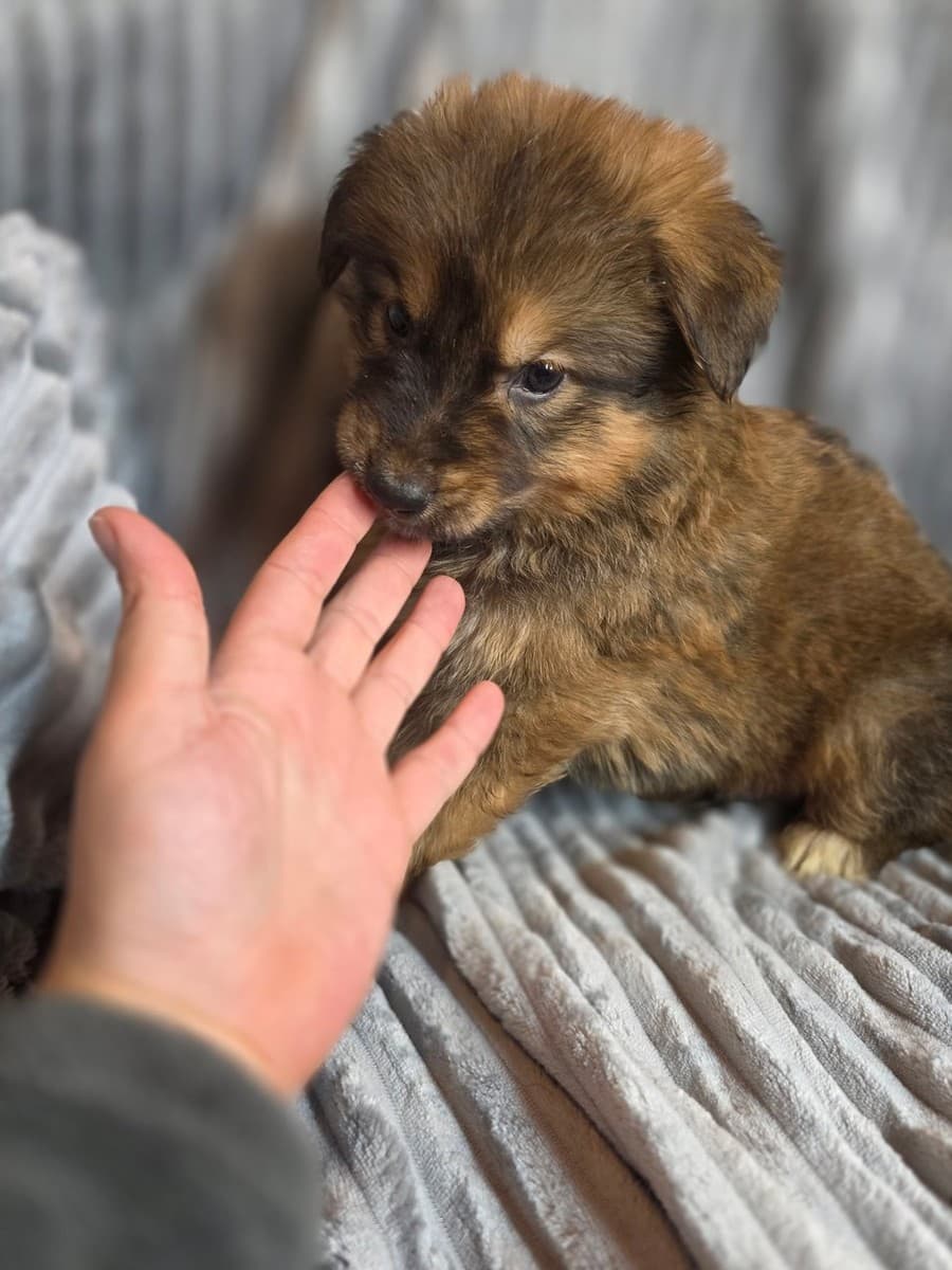 Мать щенков длинношерстная немецкая овчарка. Отец — подлец.