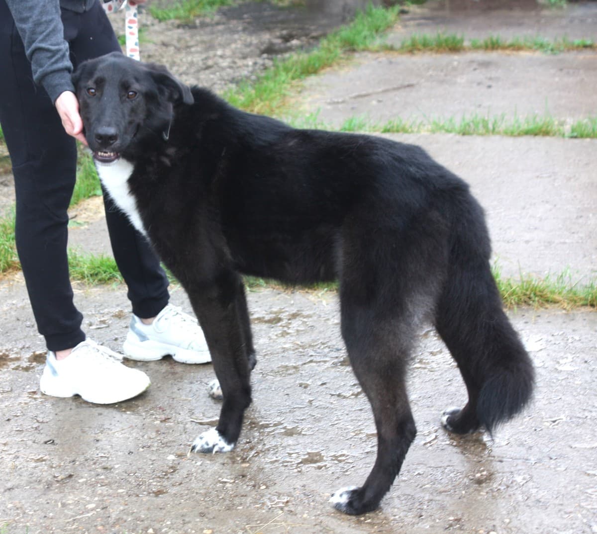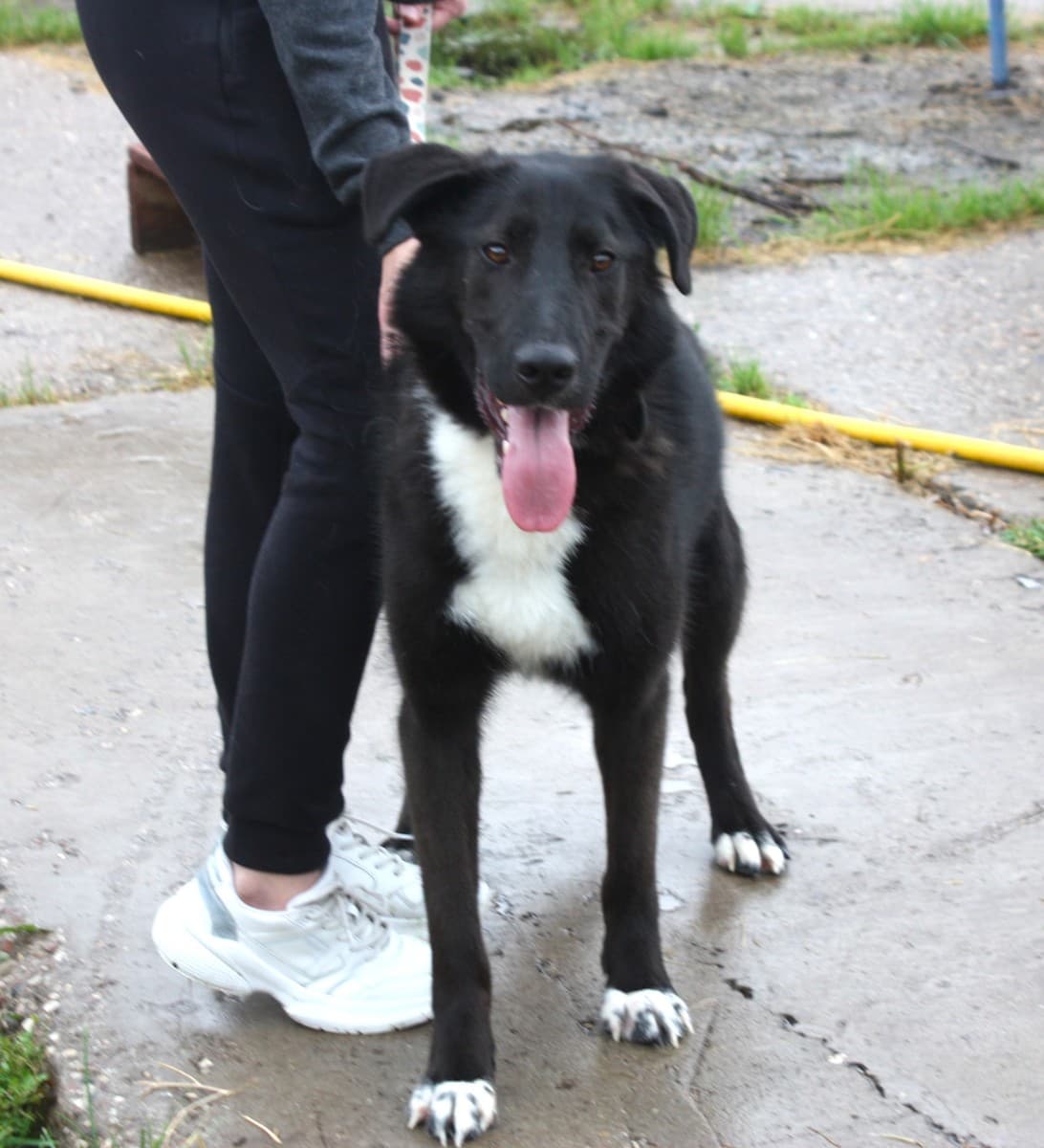 Он точно бывшедомашний, хорошо ходит на поводке и спокойно ведёт себя в машине.