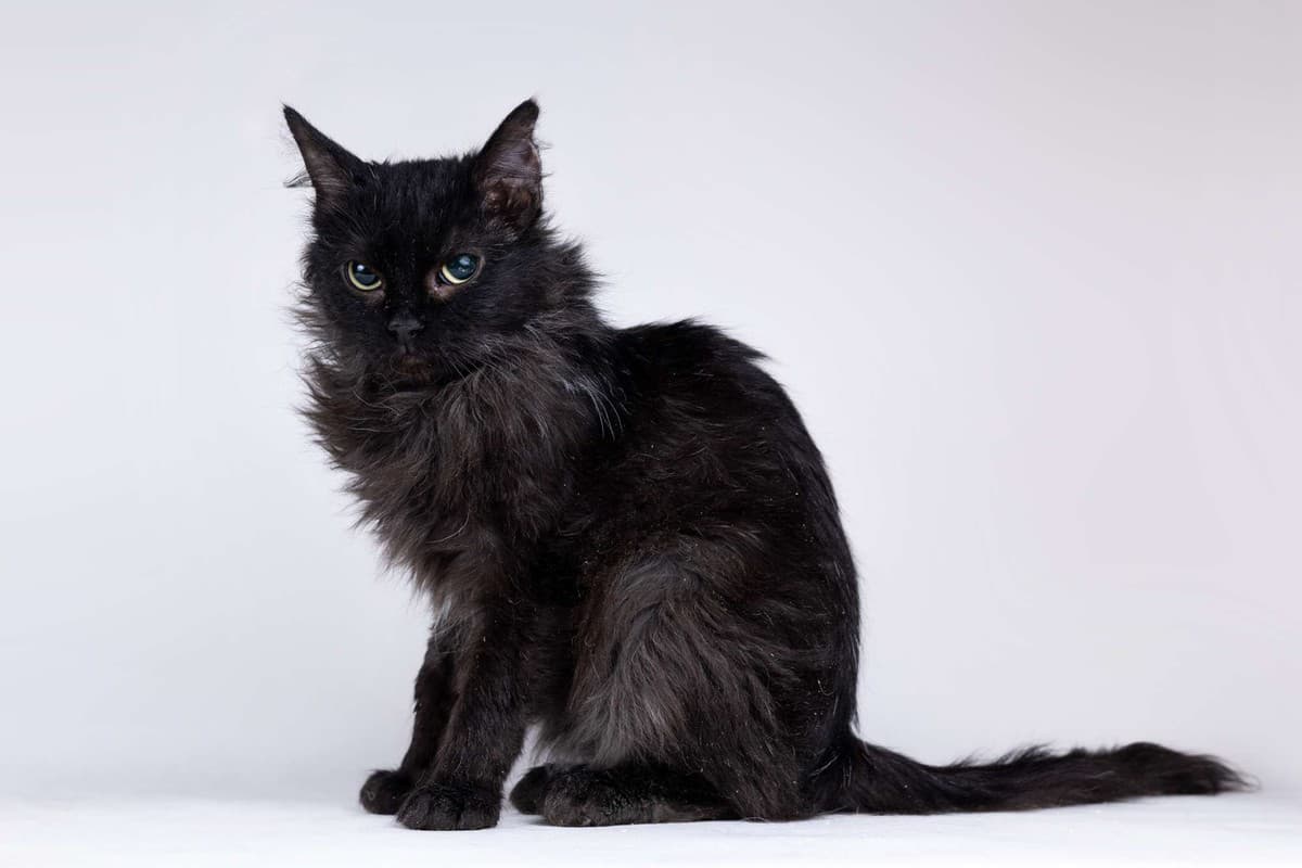 У Лорочки необычная, очень красивая шерсть, длинная и немного вьющаяся, потому что её родители — кот породы девон-рекса и сибирская кошка.