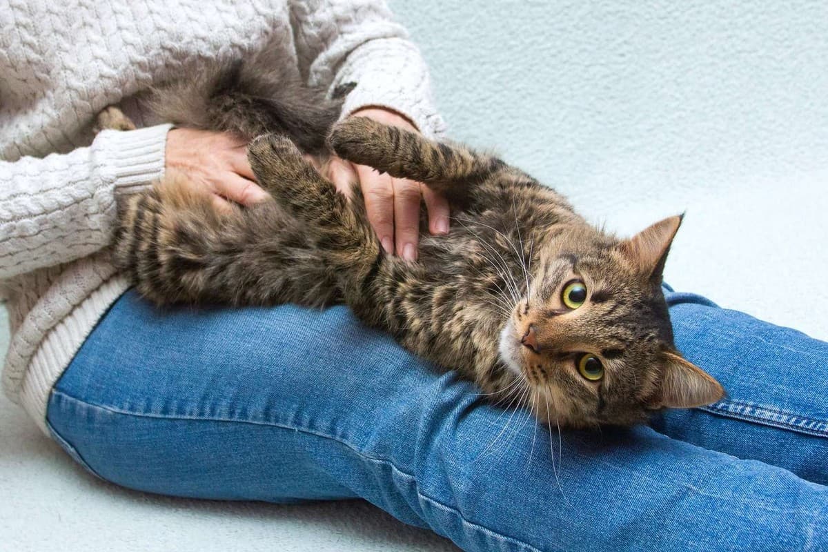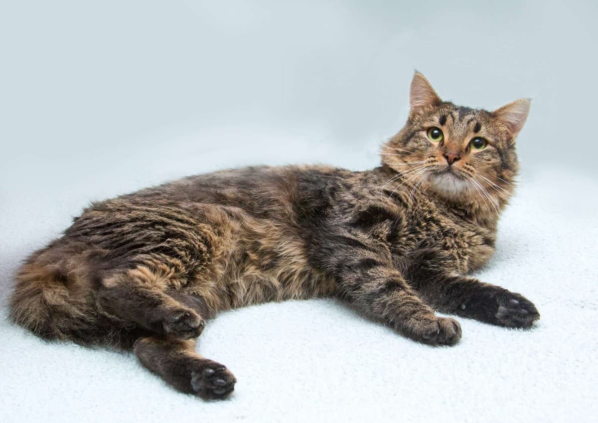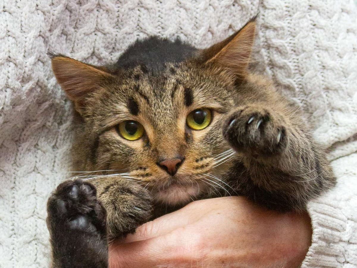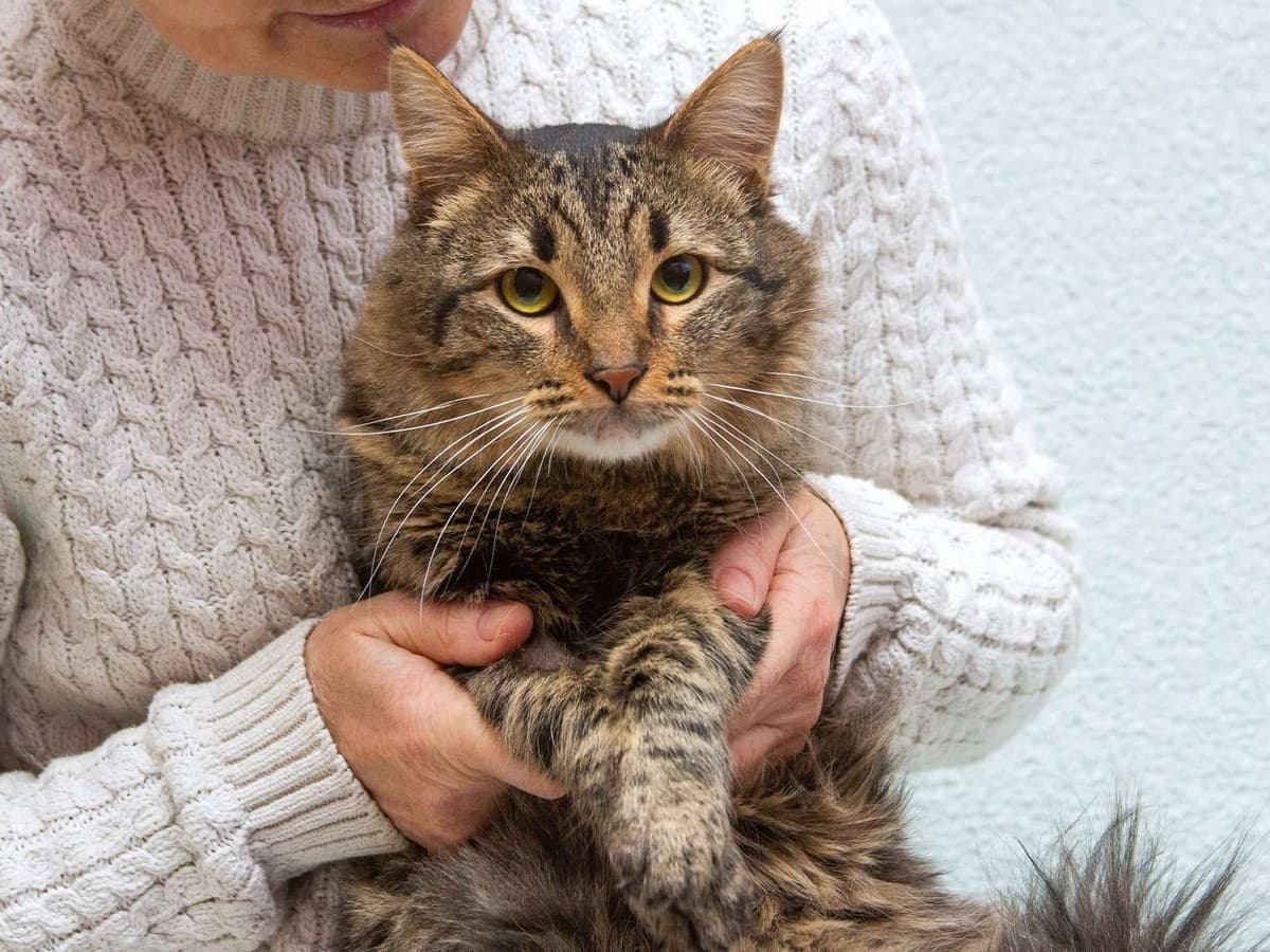 Этот большой пушистый красавец лучше всего чувствует себя на руках у человека.