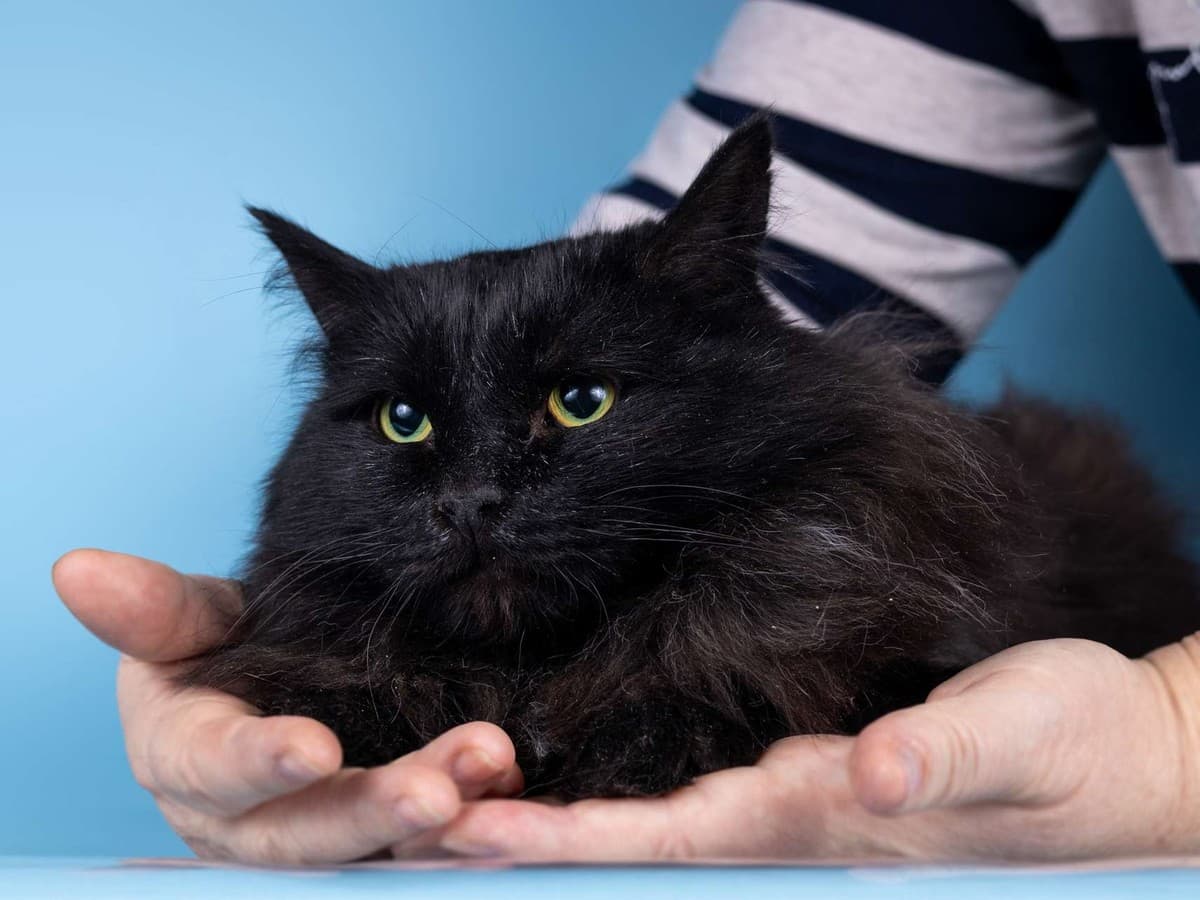 Пушистый чёрный кот Чарли в добрые руки. Трогательный чёрный пушистик Чарли похож на домовёнка.