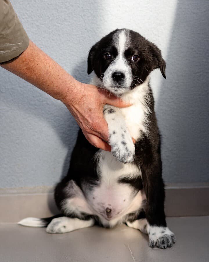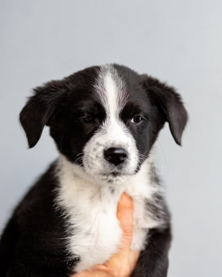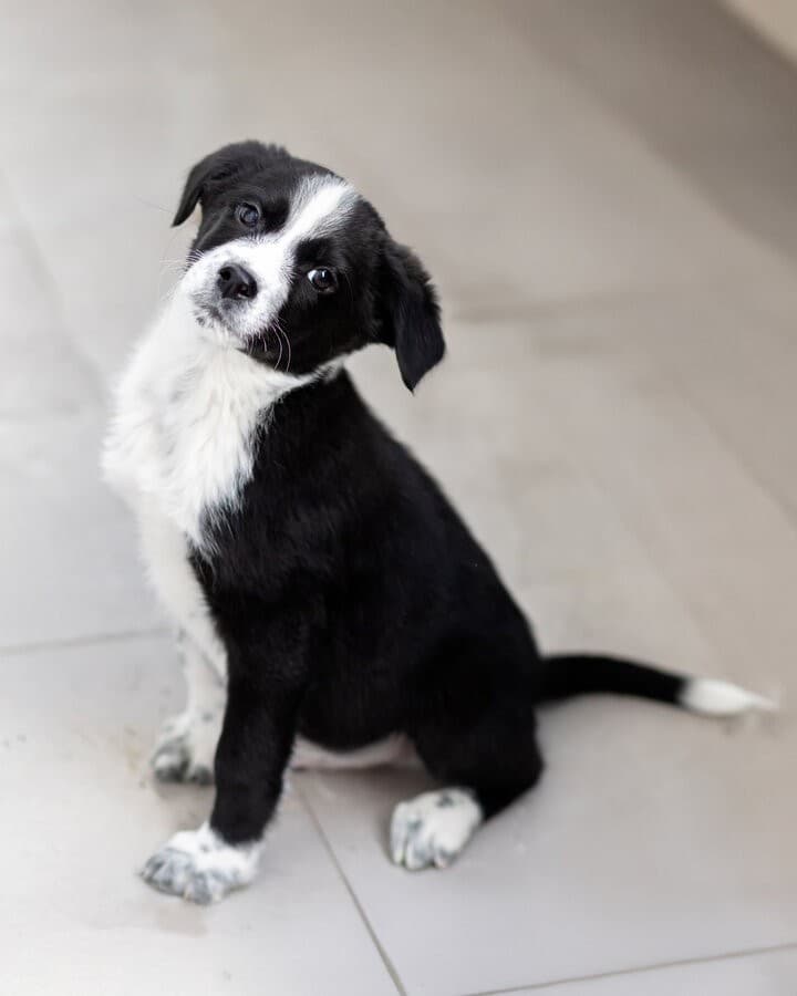 Кроха - Чижик. Он весит сейчас примерно 4 кг. ему не больше 2- месяцев. Мальчик. Очень симпатичной расцветки. Белый с черным. Скорее всего будет крупным (в районе 20 кг), но не гигантом. Привит, здоров, жизнерадостен, не пуглив. Очень стремится к общению с человеком. Классный малец!
