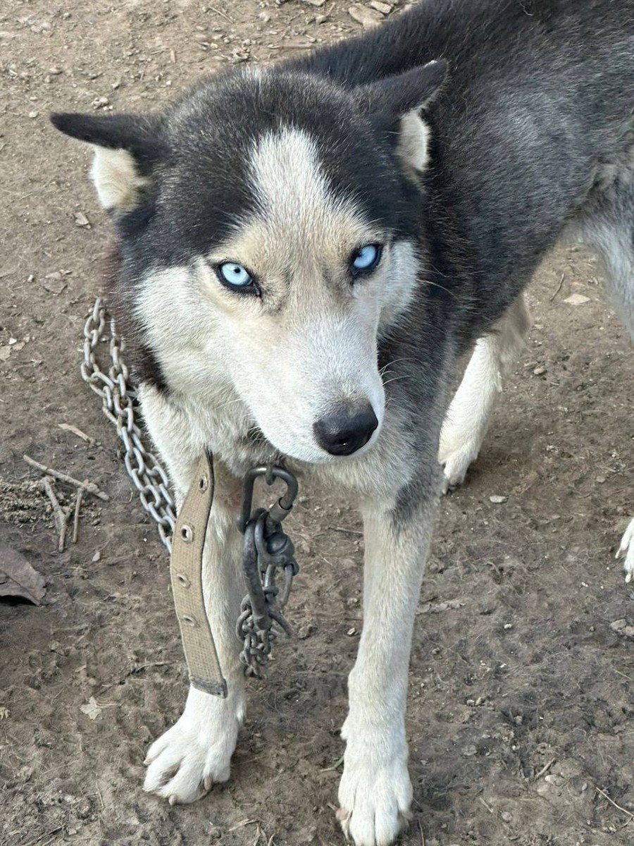 Это Лайми, и на фото можно посмотреть, как выглядел ее дом… Криво сколоченная будка, короткая тяжеленная, зато двойная, цепь, огромные карабины, добавляющие веса и нагрузки на шею, да и в общем-то это все😔 Мы не знаем, всегда ли ее дом и жизнь выглядели так, но последние месяцы точно, ведь хозяин уехал, оставив собаку без присмотра и еды, да что там, даже воды у нее не было в свободном доступе.