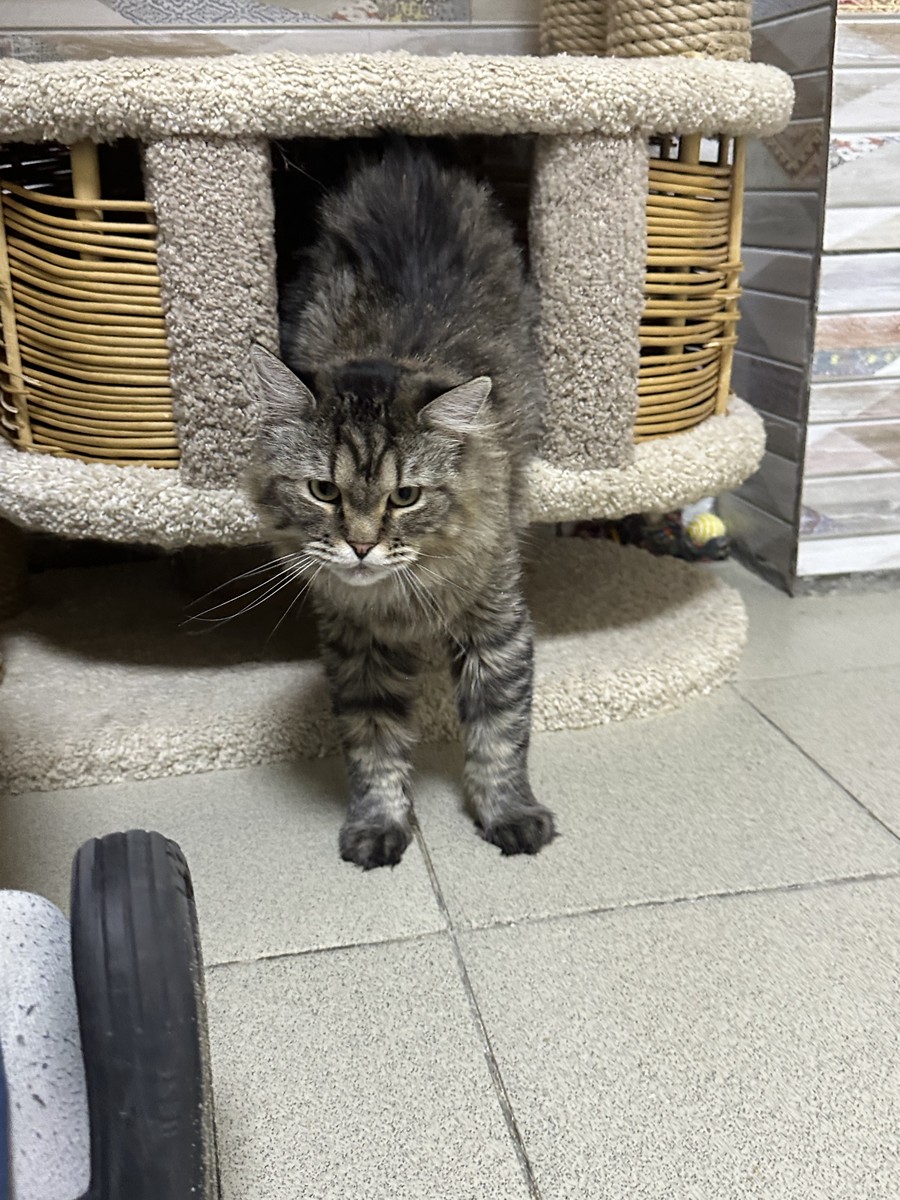 Эта кошка с особым шармом и признаками породы мейнкун. Йонда не требует постоянного внимания, но всегда рада ласке. Девочка понимает человеческую речь и знает, как проявить свою любовь.
