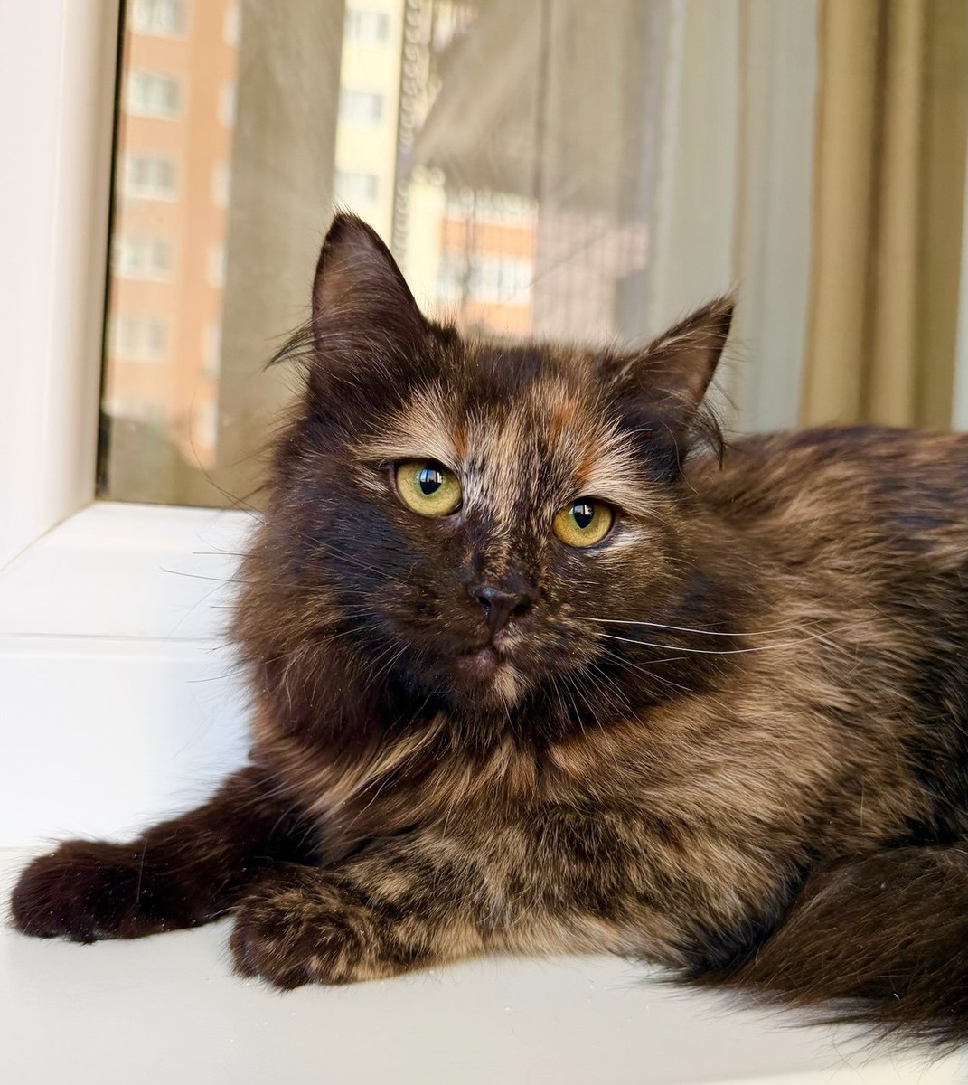 Девочке 7 месяцев, ласковая и и веселая, обладает необычным черепаховым окрасом и хорошим аппетитом. Персея предпочитает деликатное и нежное общение, в процессе которого она охотно пойдет на контакт.