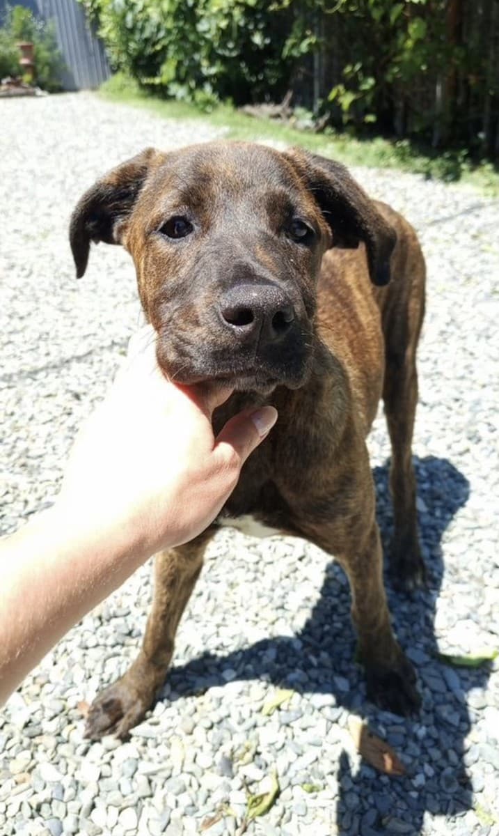 Щенок 5 месяцев, девочка тигрового окраса, стерилизованная ищет дом. Очень добрая, не агрессивная, любит детей, на кошек не обращает внимание. Здоровая. Передаётся, в семью. Не в вальер. Спасенная из Абхазии.