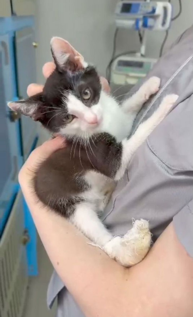 Добавлен новый питомец: Шурик. Ищу дом для котенка. Раненый чайками котенька, 2,5 месяца, лечим в ветеринарной клинике. Были повреждены хвост и лапа. Лапа сохранена, идёт на поправку. Черно белый