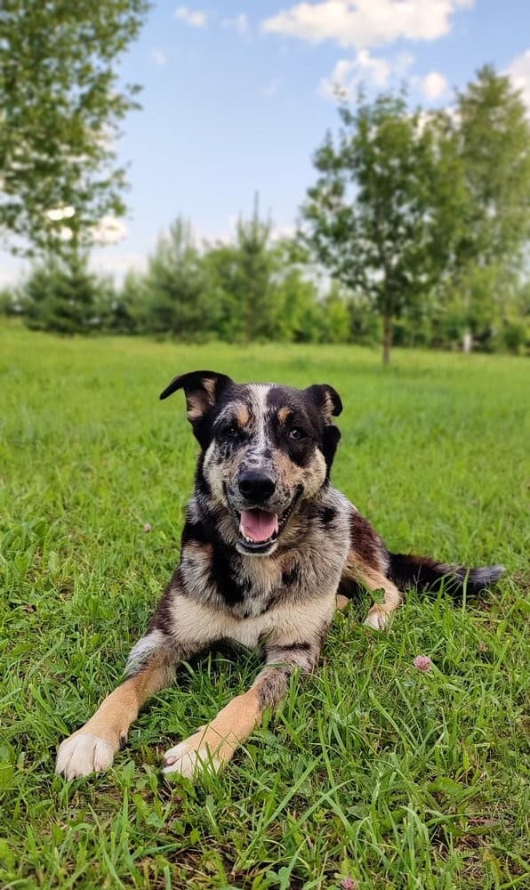 Несмотря на отсутствие породистости, проявляет аристократичные черты и несёт в себе редкий ген окраса — мерль (мраморный).