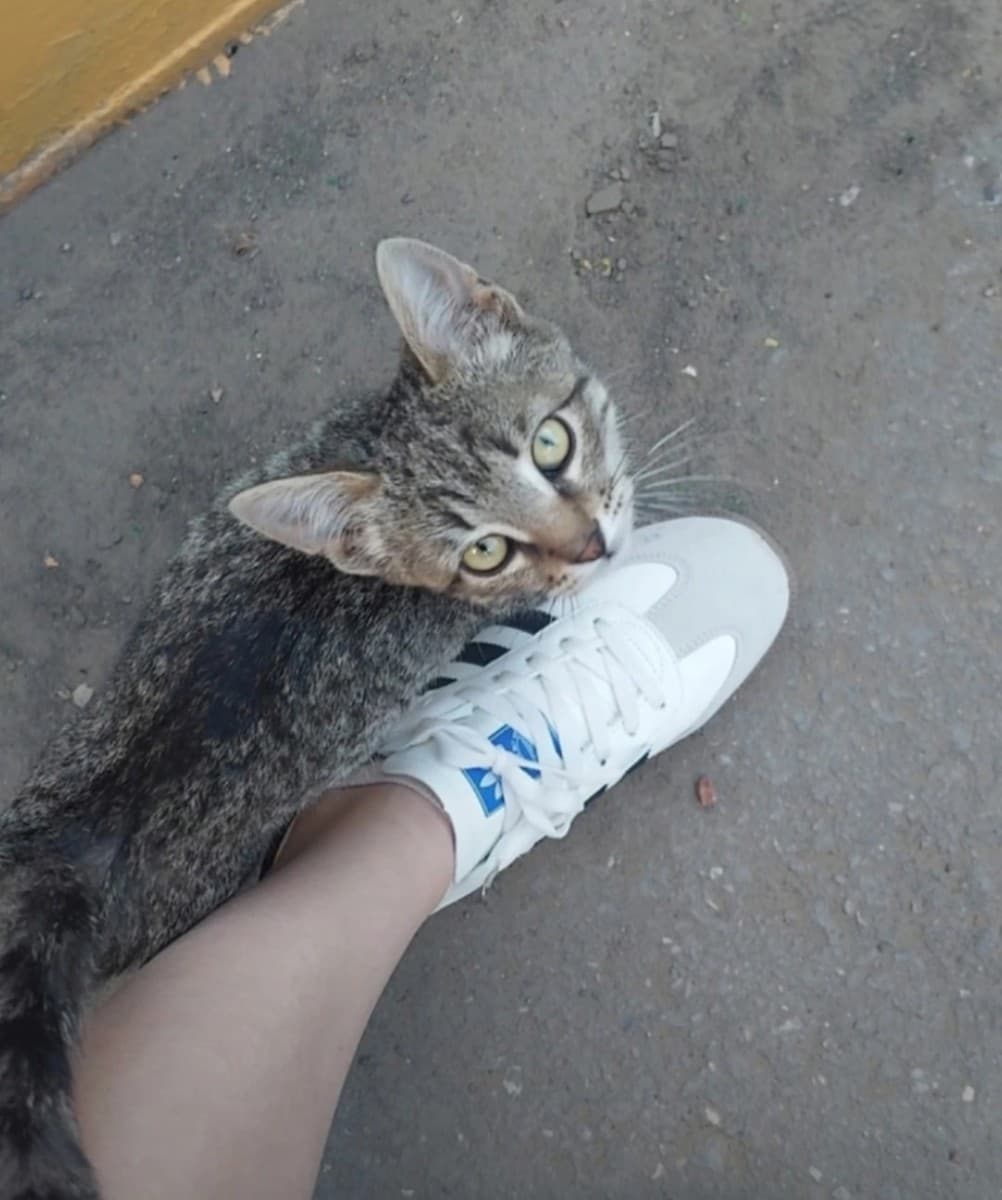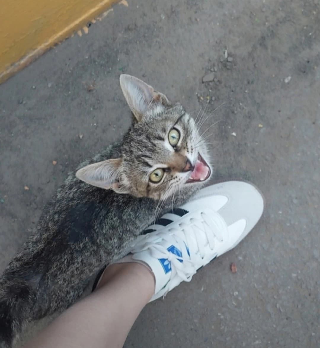 Находится в районе кири-кили. Чистенький, здоровый, но очень худой. Ездили к свекрови, увидели его там. Покормили.