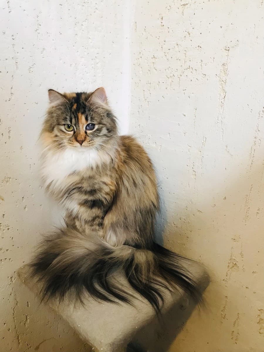 Очень ласковая, любит гладится, но осторожная и ей потребуется время привыкнуть коновым людям.С лоточком без промахов.