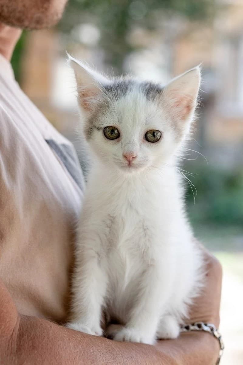 Малышка настоящая маленькая исследовательница! Она обожает играть с игрушками, лазить по домикам и, конечно же, нежиться на руках у своего хозяина. Её почти белая шерстка и игривый характер делают её неповторимой! 🐱💕