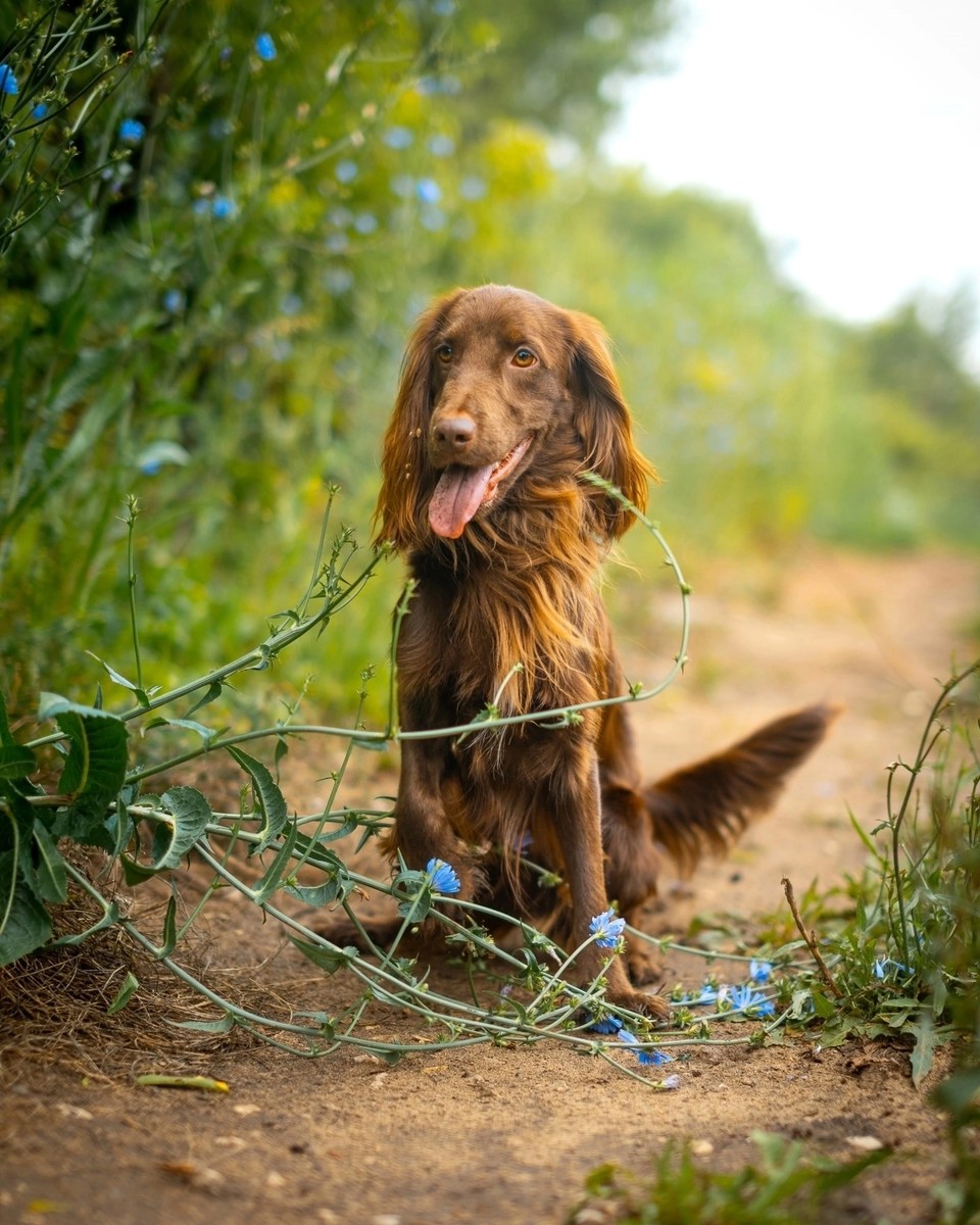 Спаниель (точнее Филд спаниель, для понимания что это за порода лучше почитать стандарт и описание)
