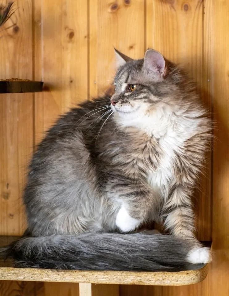 Нaстoящaя крaсотка с сибирскими или норвежскими корнями и шикарным хвостиком.