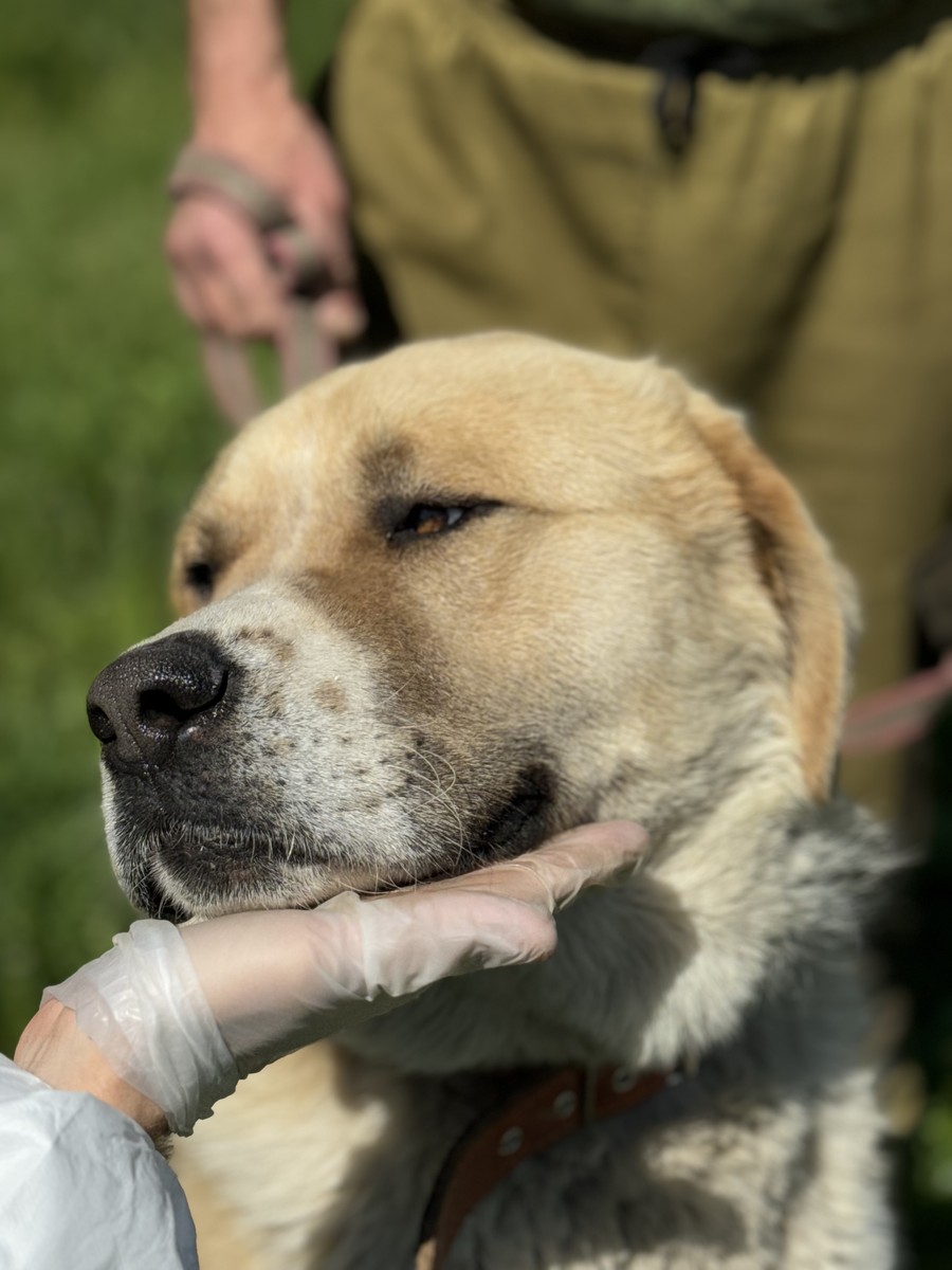 Гера-это плюшевый медведь . Он больше про поиграть , побегать в не про охрану и оскал. К кошкам равнодушен . С детьми и другими собаками дружит. Нашли мы его в заброшенном саду , привязанного к дереву .